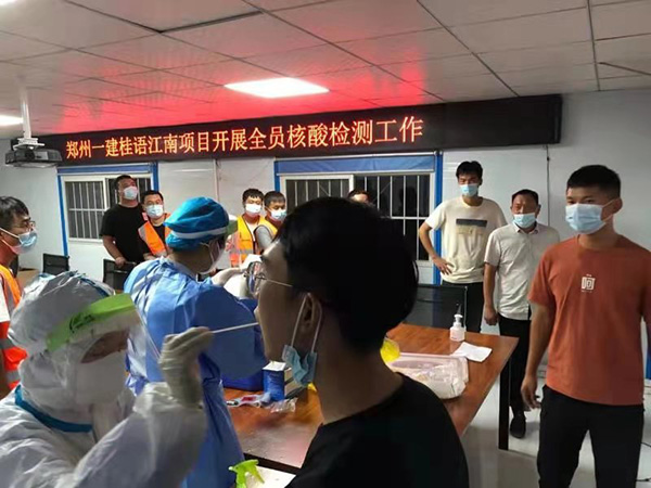 8月7日,綠城項目部在縣防疫要求掃碼基礎(chǔ)上請安陽地區(qū)醫(yī)院對項目所有人員進(jìn)行核酸檢測,包括項目部全體人員、一標(biāo)段總包單位所有管理人員及工人、二標(biāo)及三標(biāo)段總包單位管理人員等近400人進(jìn)行核酸檢測。