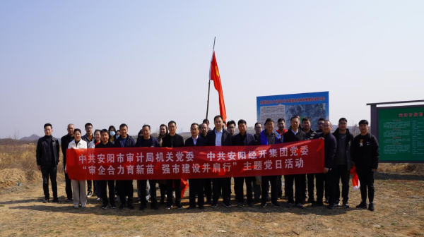 春回大地萬物復(fù)蘇,植樹添綠正在當(dāng)時(shí)。在第46個(gè)植樹節(jié)來臨之際,3月14日,經(jīng)開集團(tuán)黨委與市審計(jì)局機(jī)關(guān)黨委30余人來到殷都區(qū)磊口鄉(xiāng)國儲林項(xiàng)目基地開展了以“審企合力育新苗,強(qiáng)市建設(shè)并肩行”為主題的黨日活動(dòng)。經(jīng)開集團(tuán)黨委書記、董事長齊方,安陽市審計(jì)局黨組成員、市政府投資和經(jīng)濟(jì)責(zé)任審計(jì)中心主任李著亮參加本次活動(dòng)。