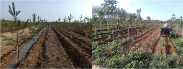 養(yǎng)護(hù)期的主要任務(wù)是澆水、除草、打藥及除蘗,養(yǎng)護(hù)期工作對(duì)新造林的成材極為重要,尤其前兩年的養(yǎng)護(hù)對(duì)人工林的整體成活率起著決定性作用。