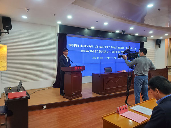 2021年1月13日上午,盛威時(shí)代智慧谷項(xiàng)目簽約儀式在市黨政綜合樓2樓第5會(huì)議室舉行,市政府、盛威集團(tuán)、安陽(yáng)戰(zhàn)新基金、示范區(qū)管委會(huì)、經(jīng)開(kāi)集團(tuán)等單位的主要領(lǐng)導(dǎo)參加簽約儀式。儀式由市政府秘書(shū)長(zhǎng)李傳銀主持,常務(wù)副市長(zhǎng)陳志偉代表市政府簽約,袁家健市長(zhǎng)致辭,齊方董事長(zhǎng)代表經(jīng)開(kāi)集團(tuán)出席簽約儀式。