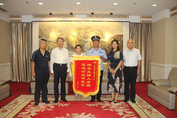 2021年7月28日下午3點,“感謝你們,我這條命是你們撿回來的!”安勤公司員工曹運玲拿著“洪水無情人有情,危難時刻伸援手”的錦旗在市黨政綜合大樓一樓會客室送到市黨政綜合樓保安中隊中隊長戶永豐手中,感謝他們的救命之恩。安陽市機關(guān)事務(wù)中心、三級調(diào)研員陳紹華,機關(guān)事務(wù)中心、保衛(wèi)科長孫文勝;安陽市安勤商務(wù)公司董事長兼總經(jīng)理劉全喜,安勤商務(wù)公司副總經(jīng)理王軍;安陽經(jīng)開集團黨委委員副總經(jīng)理劉志霞;洹河保安公司黨委委員、副總經(jīng)理魏東,總經(jīng)理助理、人防分公司經(jīng)理李向陽,參加此次活動。